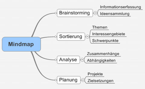 Wie Sie sehen, gibt es viele Möglichkeiten für den Einsatz von Mindmaps. Sie erlauben ein kreatives Arbeiten und können bei Routinetätigkeiten unterstützen.