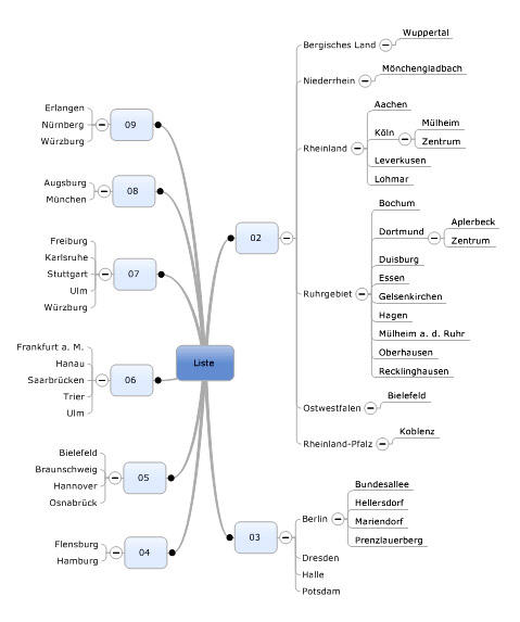 In einer Mindmap organisiert könnten diese Daten folgendermaßen aussehen: