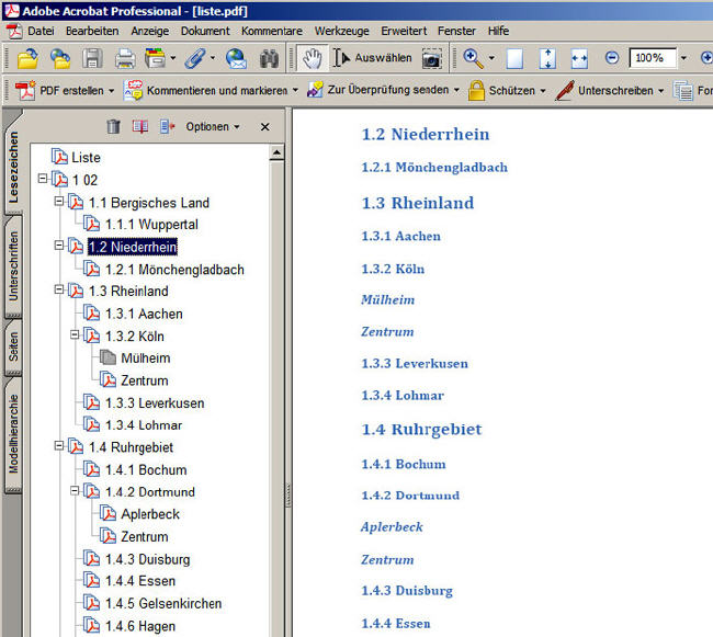 Von dort aus entsteht dann automatisiert mit wenigen Klicks ein exportiertes PDF-Dokument mit einer funktionierenden Lesezeichen-Navigation.